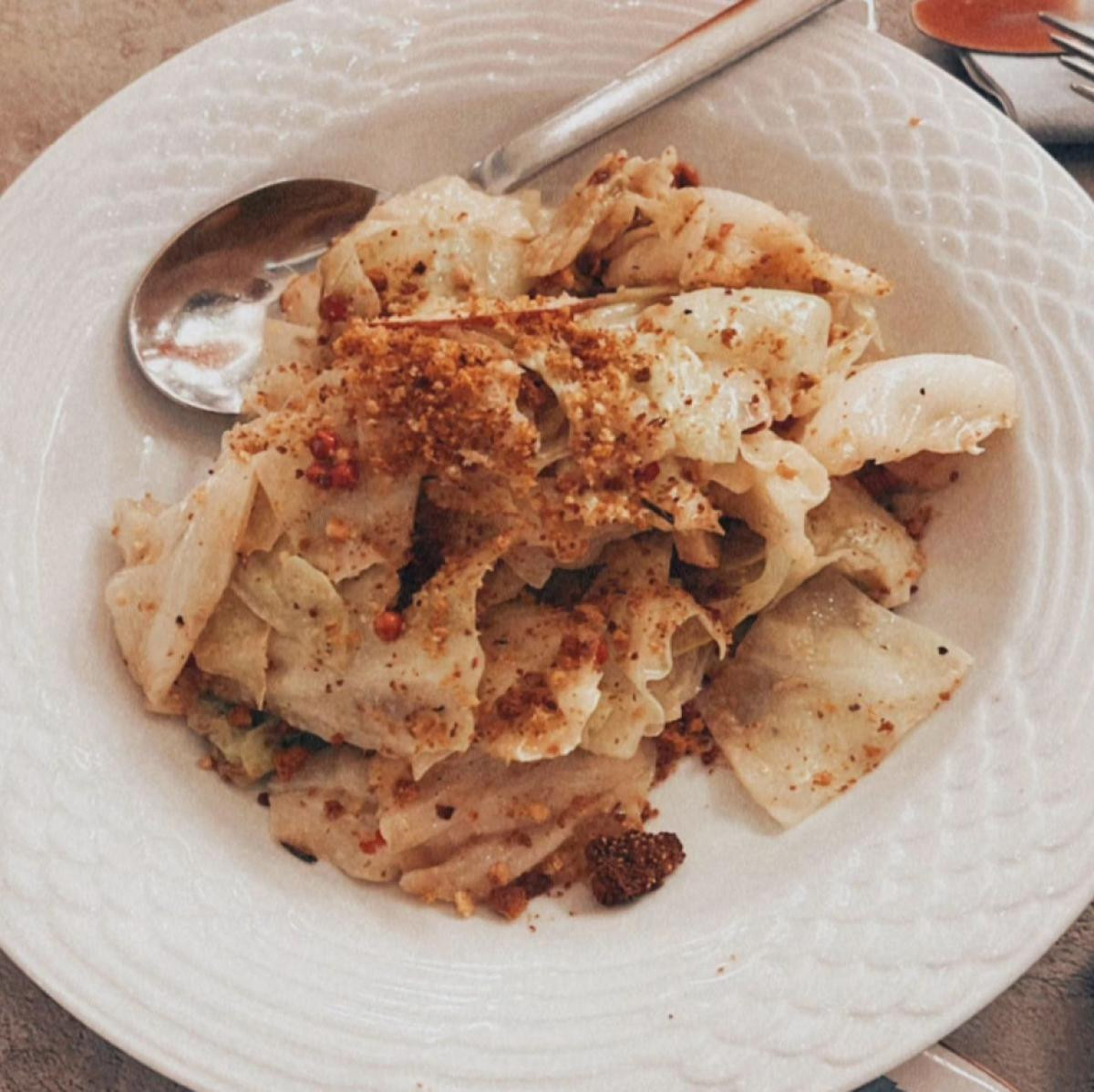 Απίθανο γιουβέτσι με μοσχαρίσια μάγουλα όπως της “γιαγιάς”…δεμένη φάβα παντρεμένη σωστά με το ψάρι,λίγη προσοχή στις σαλάτες,προτιμήστε φρέσκα χόρτα όταν έχει,θα ήθελα ένα καλύτερο βούτυρο στην crepes sauzzete πιο αρωματικό (clarifie)και ένας σερβιτόρος από τις Σέρρες με ευαισθησία στις επιλογές του κρασιού και χαμόγελο βορειοελλαδίτικο αληθινό.