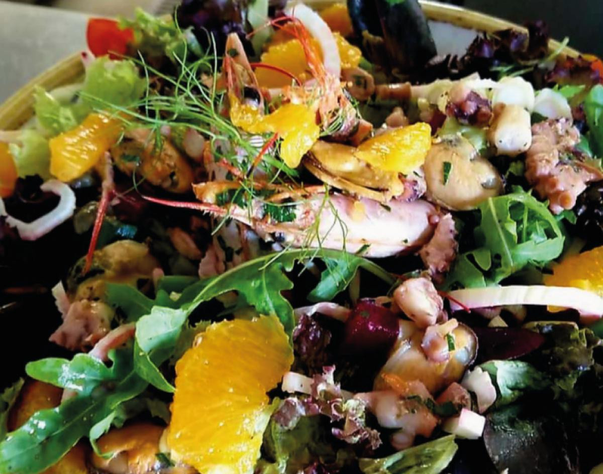 Το μενού επικεντρώνεται σε φρέσκα θαλασσινά, όπως ψάρια και καλαμάρια, καθώς και σε παραδοσιακά κεφαλονίτικα πιάτα. Συνοδεύονται από τοπικά προϊόντα και ελαιόλαδο, προσδίδοντας αυθεντική γεύση στα πιάτα. Υπάρχουν επίσης επιλογές για κρεατικά και χορτοφαγικά πιάτα, καλύπτοντας μια ποικιλία προτιμήσεων. Το σέρβις είναι φιλικό και εξυπηρετικό, ενώ οι τιμές είναι προσιτές για την ποιότητα του φαγητού και της τοποθεσίας.