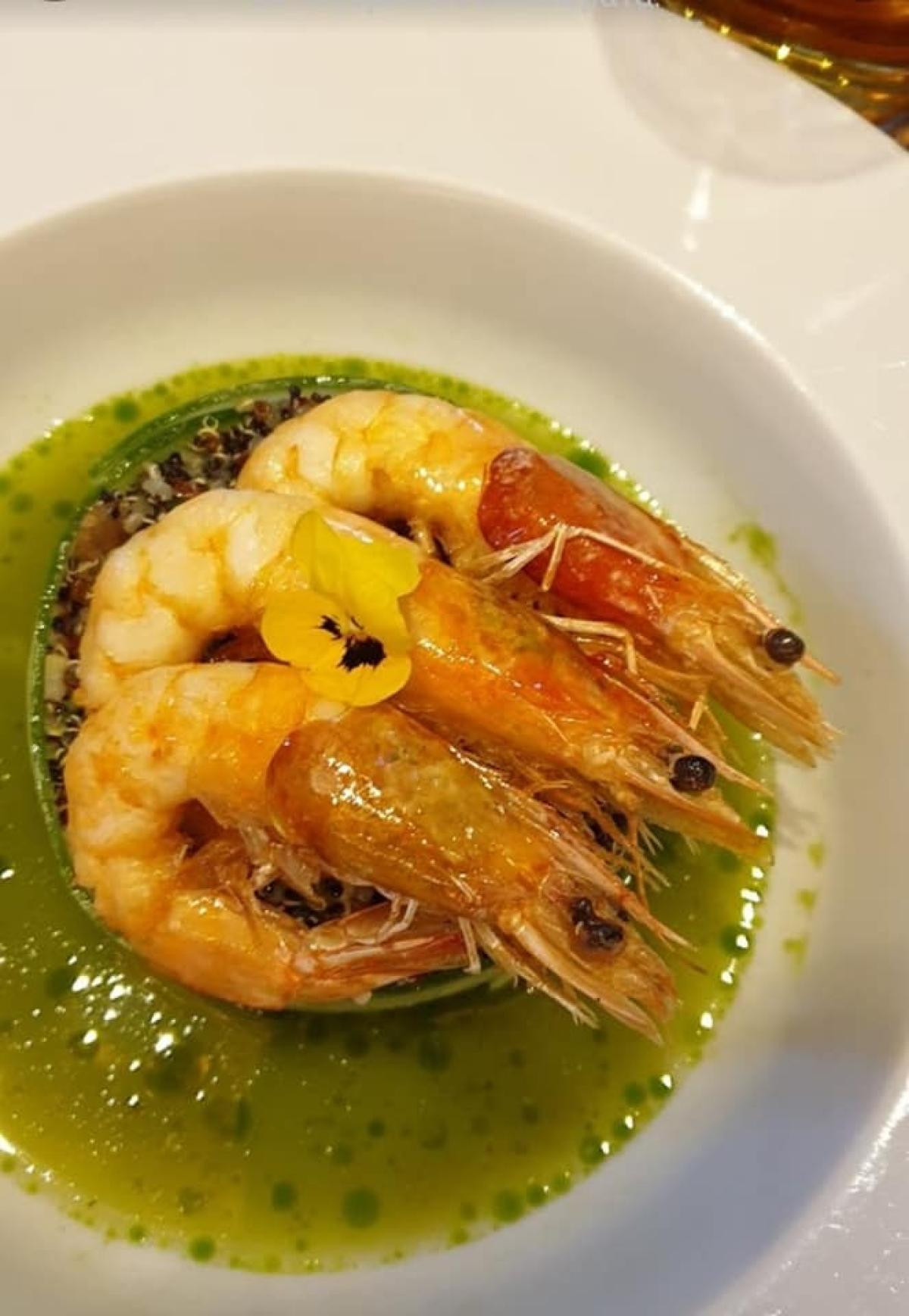 ελαιόλαδο, και ρίγανη, τις λαχταριστές γαρίδες σαγανάκι, με σάλτσα φρέσκιας