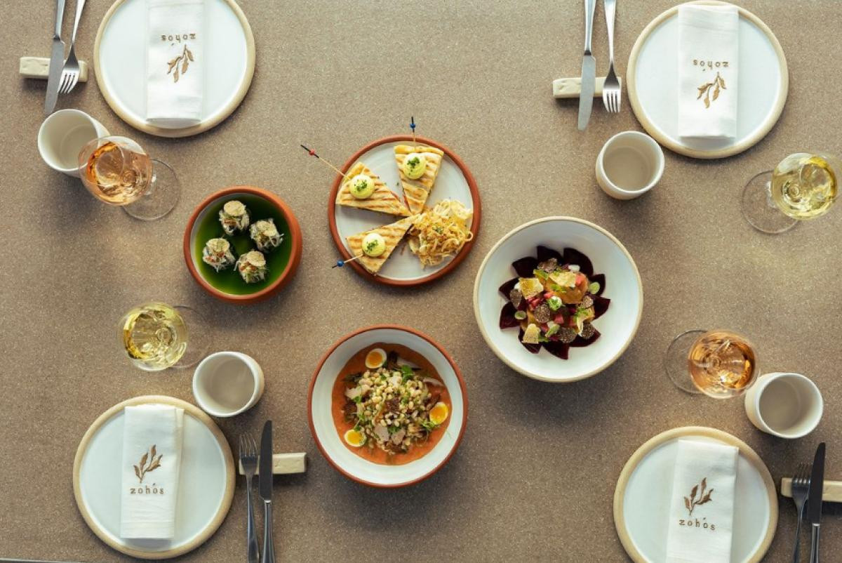 Το μενού του Zohόs αποτελεί μια εξερεύνηση των γεύσεων και των αρωμάτων της Ελλάδας. Από παραδοσιακές γεύσεις μέχρι δημιουργικές συνθέσεις, το μενού αγκαλιάζει την ιδέα του “μεζέ" και ενθαρρύνει όλο το τραπέζι να μοιραστεί δημιουργικά πιάτα. Με τα πιο φρέσκα υλικά από τους τοπικούς παραγωγούς και ψαράδες, και χρησιμοποιώντας μεθόδους και τεχνικές slow cooking που συναντούμε σε παλιότερες εποχές στην ελληνική επαρχία θα σας μεταφέρει στα πιο αυθεντικά στιγμιότυπα της ελληνικής παραδοσιακής κουζίνας. Τα πιάτα προετοιμάζονται με την τεχνική μαγειρικής “nose-to-tail” δηλαδή την αξιοποίηση όλων των υλικών ώστε τίποτα να μην πηγαίνει χαμένο προωθώντας έτσι την βιωσιμότητα.