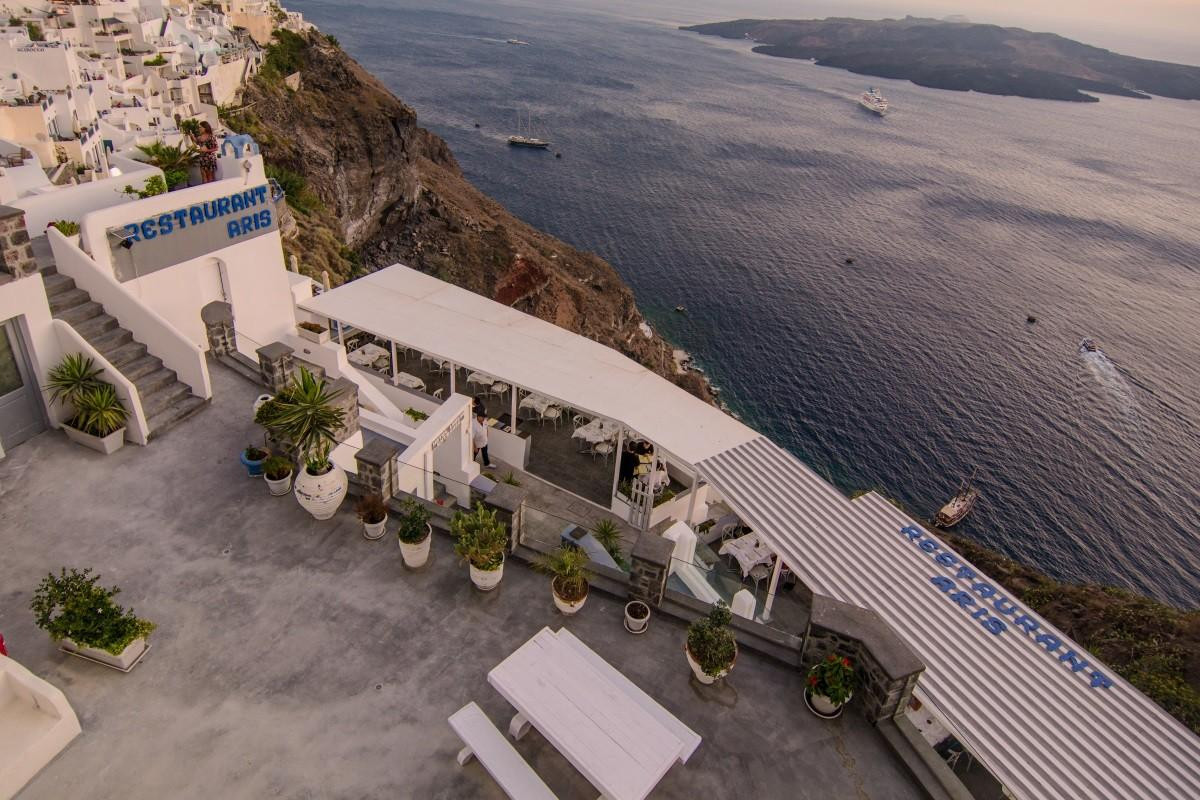 We were on a nine day cruise and stopped for several hours in Santorini. We made a reservation for this restaurant about a month before arriving. The table was great, view was great, service was great. All around a wonderful experience. If you only have a few hours to spend in Santorni, spend them at a memorable and beautiful location like Aris. Definitely make a reservation! Highly recommended.