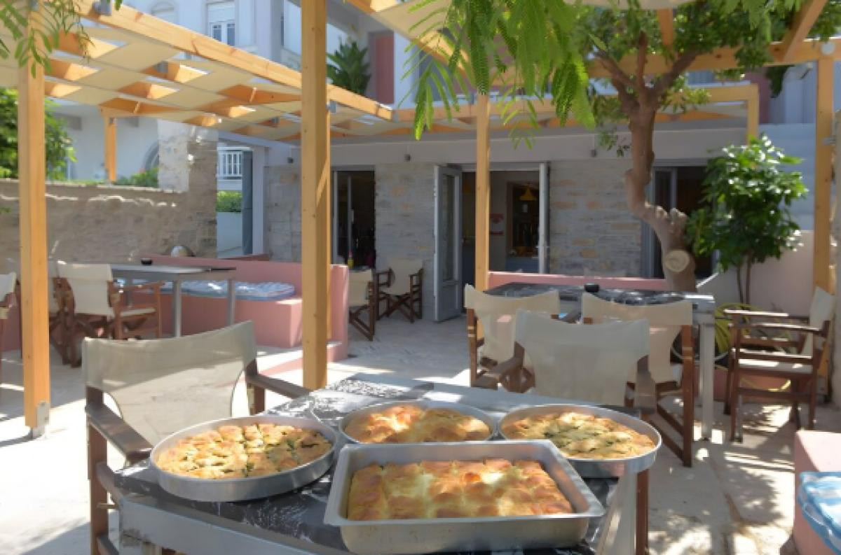 Welcome to Fyllo Fyllo. It is a really special and unique shop in Samos. The restaurant's flowery courtyard with the wonderful bougainvillea, rose bushes and jasmine, the terrace overlooking the sea and the town of Vathes will relax you and take you to a world of senses and flavours. The winter interior with the warmth of the fireplace and the decoration reminiscent of nostalgic seasons is the best choice for winter visitors. The restaurant's menu is rich in choices and you can try salads, cheeses, snacks (seafood and meat) and roasts of the hour. Try handmade pita of the day, feta cheese in a leaf with honey and sesame, burgers accompanied with potatoes, a variety of meats, tenderloin with Roquefort sauce, mushrooms stuffed with cheese, handmade pizzas of the restaurant and many other options offered by the restaurant. To complete your meal in the sweetest way, choose baklava, homemade fresh galaktoboureko, fresh bougatsa with cream or crunchy doughnuts. Visit Fyllo Fyllo restaurant in Samos and enjoy unique Greek flavors that will surprise you!