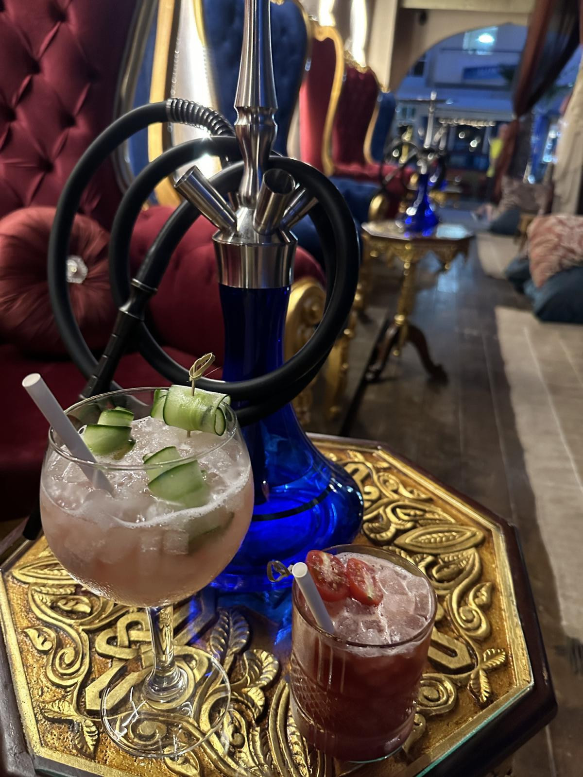 We went for a drink and decided to try shisha,too.drinks and shisha where great.for 1 mohito,1 espresso martini and 2 shisha we ve payed around 70 euros.the service was friendly, and the place was really nice next to the sea.