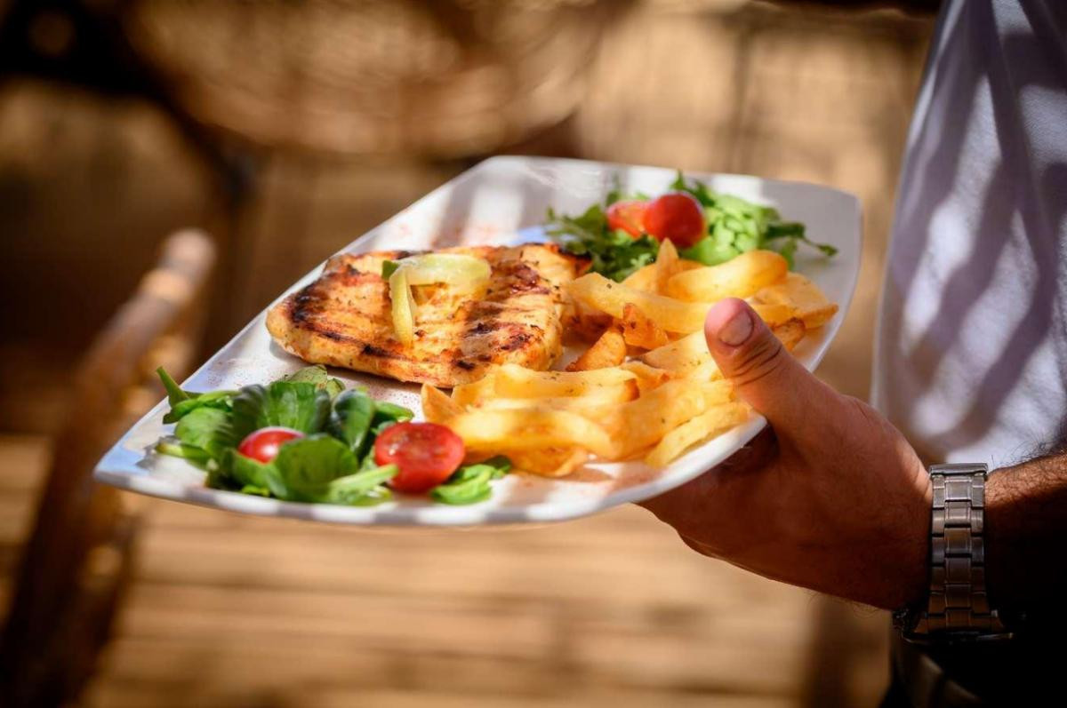 • Snacks, coffee and cocktails are available on the sunbeds on the beach, right in front of the restaurant. The fee per set (2 sunbeds with an umbrella) is 15 euros and the price includes beach towels, water and champagne with ice.