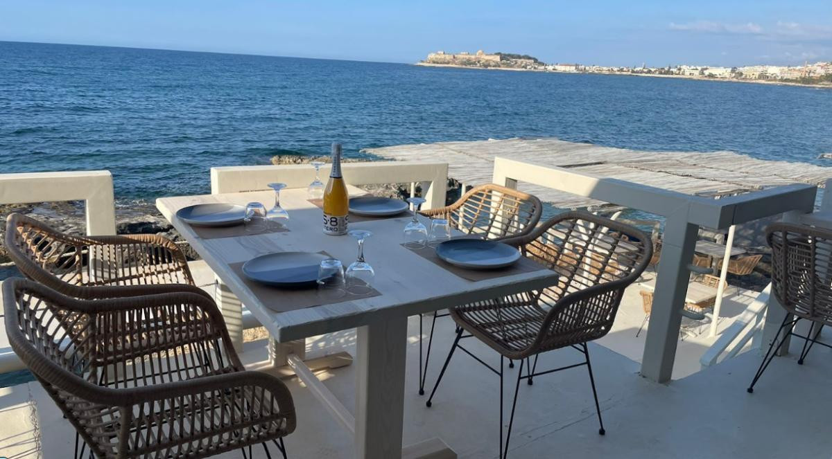 The restaurant has a terrace right by the sea with a view of the citadel of Rethymnon.