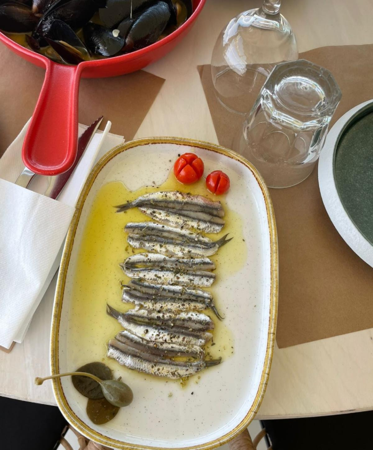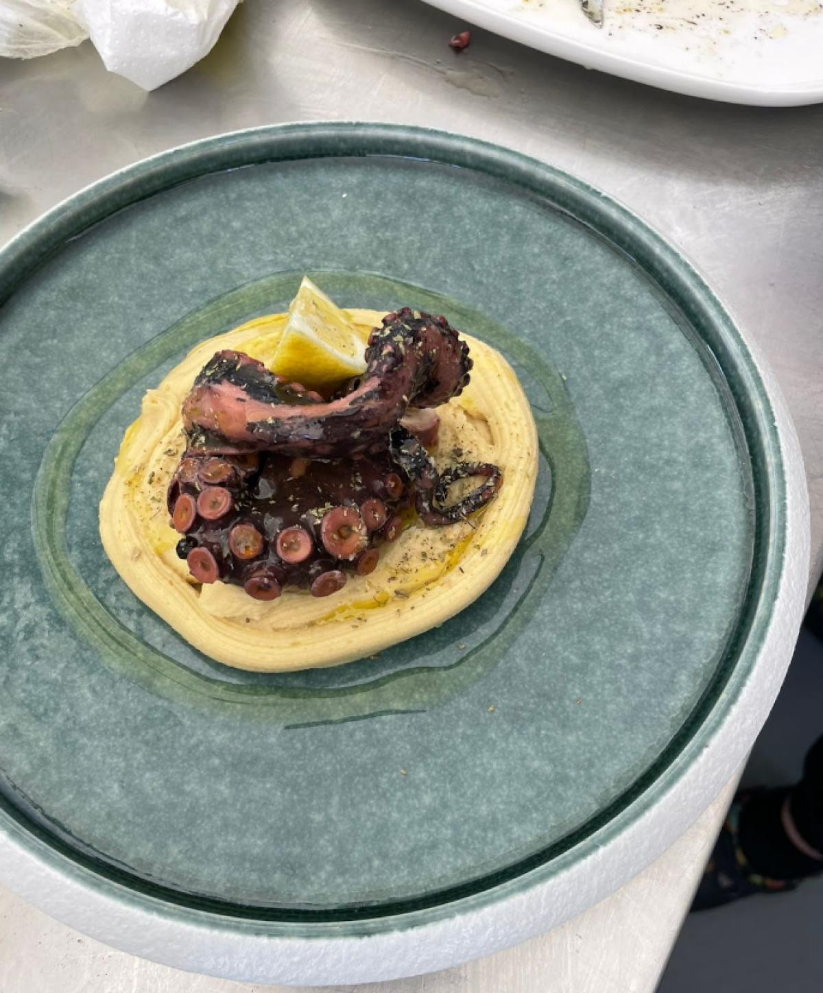 Maistas nuostabus,tirpstantis burnoje. Pasirinkom pradžiai tzaziki, keptas sraiges, keptas krevetes ir glirintą aštuokojį. Visi skoniai nuostabūs :) Pabaigoje gavom šeimininkų desertą :)