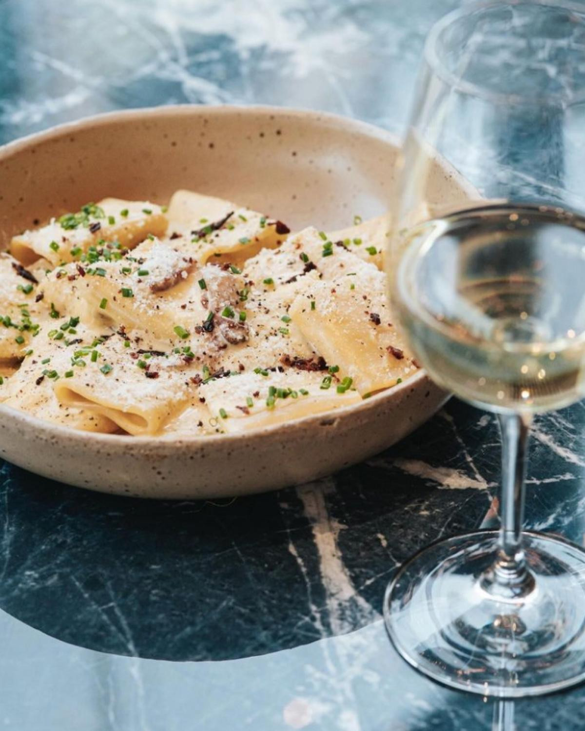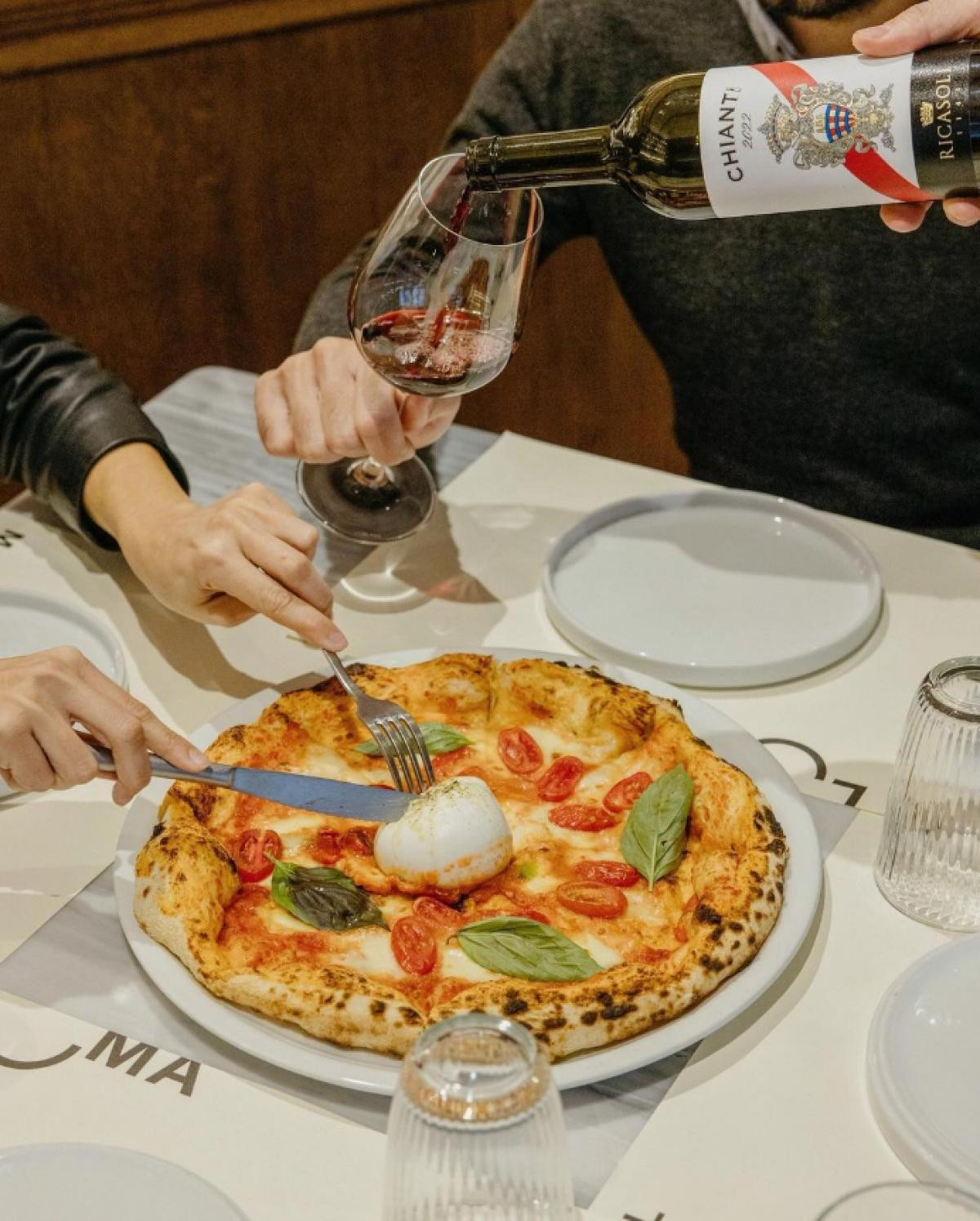 At LUMA the phrase "modern trattoria" translates into a mix of traditional and modern, with classic Italian recipes, but also dishes with a special twist. Authentic Neapolitan pizza, fresh pasta, which visitors see being prepared every lunchtime, a selection of fine anti pasti and sweets with balanced flavors, make up the menu, which was curated by Executive Chef Kostas Karakostas and Head Chef Yiannis Nitsolas. Among the options on the menu, among the antipasti, Foccacia con Stracciatella di Buffala stands out, which becomes the ideal to-share starter, while among the first dishes, the special version of carbonara with Neapolitan Paccheri pasta steals the show. The pizza one should try is the Amatriciana with the favorite pasta sauce taking on a different texture, but also the white Mortadella e Pistachio pizza with intensity and character. Finally, thanks to its crispy texture and the combinations of flavors it offers in one dish, the Costoletta alla Milanese is one of the most unique proposals. The menu could not but be accompanied by an equally rich variety of wines, originating from all over the world. The wine labels are divided according to their "identity" so that guests can choose the one that matches both their food choice and their preferences.