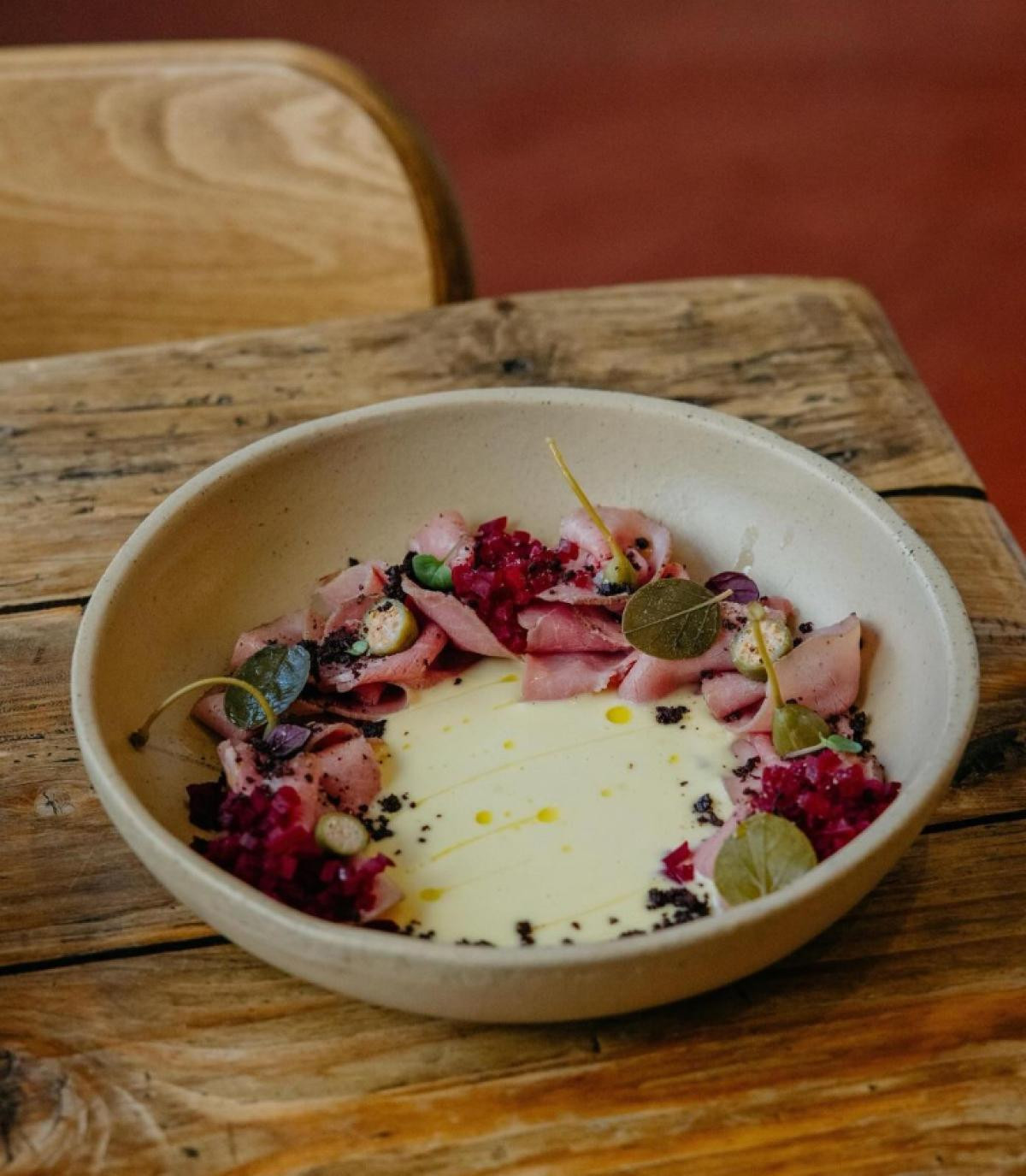 As for the architecture, the neoclassical building of LUMA, which has preserved its traditional character, is divided into 4 rooms. Entering you encounter a warm space, which immediately transports you to a hidden trattoria in the alleys of Naples. As you walk around the space, the open kitchen with its built-in oven emerges. There is the 2nd level of the restaurant, where the influences from the Italian Riviera are evident. Going up the stairs, the scenery changes. You move to the 3rd space, a terrace, with a perimeter view, which operates all year round, to give a taste of the magic of each season. However, the most private "corner" of the restaurant is located in the basement. In the specially designed walk-in cellar with its few tables and its more atmospheric feel, which you can also book for a private event.