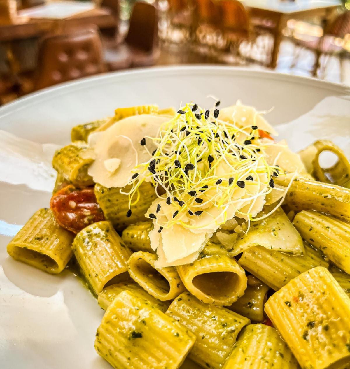 As a first course we suggest you try among the Thai spring rolls, Pastrami Drama with parmesan, mesla and mayonnaise truffle, Empanadas (Colombian pies) with spicy minced meat, cheeses and spices and Iberian sausages with mantis and creti mummy. As a main course we suggest you try Gnocchi with Peruvian potato, truffle puree and prosciutto, Pizza with truffle cream, fresh mozzarella and wild mushrooms, Black Angus, Piu Verde Shrimp Spaghetti and spicy Hawaiian Havana ch.