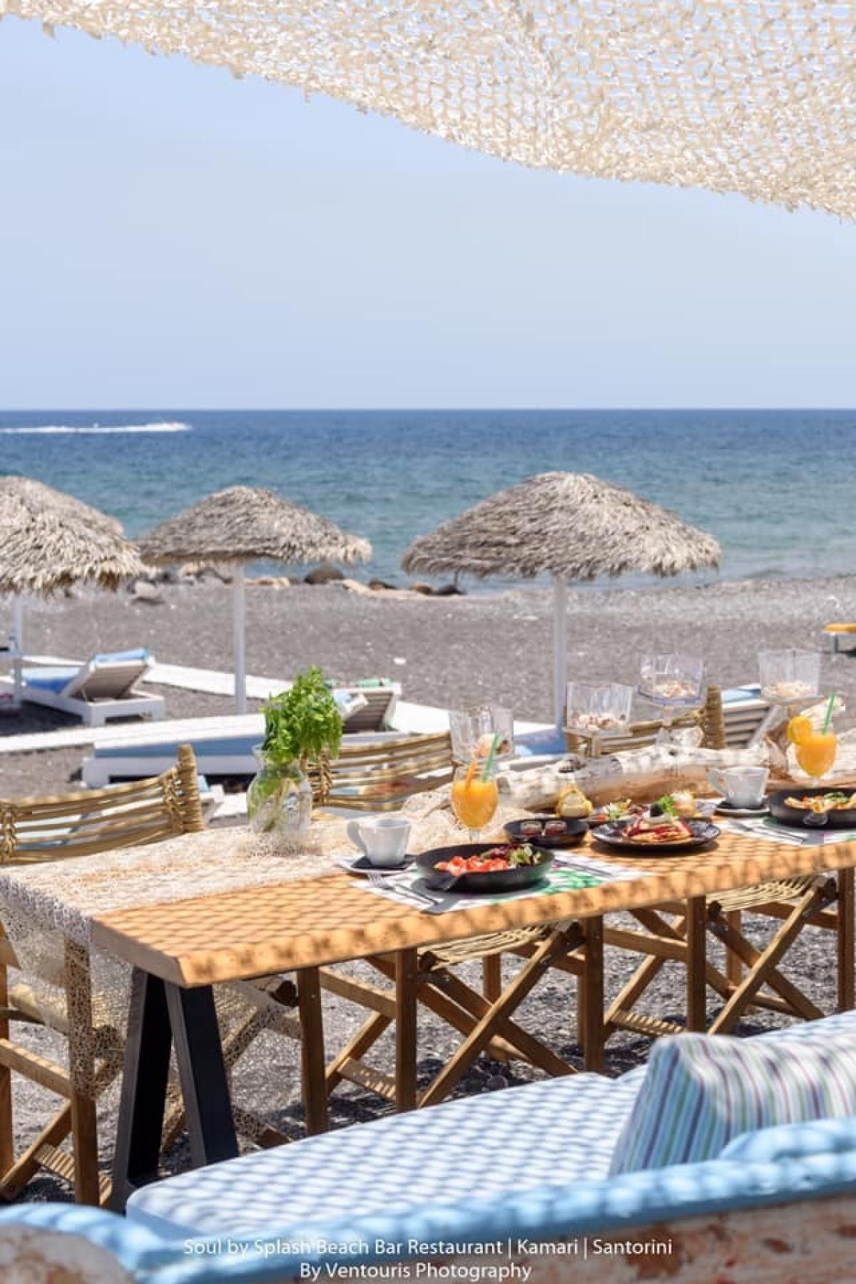 Soul by Splash is a wonderful place on the famous black beach in Kamari Santorinis that offers many services to its guests. This beautiful All Day Bar restaurant is definitely one of the top spots on the island, which perfectly combines comfort and relaxation with luxury and unparalleled views of the Aegean Sea.