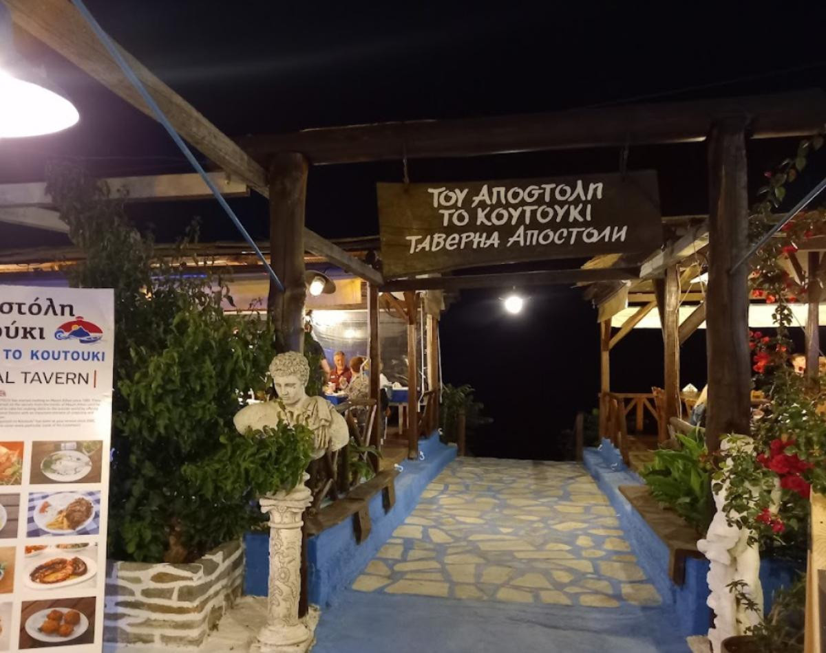 Welcome to T'Apostolis restaurant The Koutuki. It is located in T'Apostoli To Koutouki Halkidiki and welcomes you to its premises by its extremely helpful and courteous staff.T'Apostoli To Koutouki restaurant creates for you delicious Greek and Mediterranean cuisine dishes, as well as seafood dishes. From the menu of the restaurant you can try fresh salads with the Greek village salad, the delicious moussaka, beef stofado, pastitsio, souvlaki, grilled shrimps, pork roast, and many other options available in the restaurant. The best choice to accompany your meal would be a glass of white wine or a cold beer. In Halkidiki all roads lead to T'Apostolis to Koutouki restaurant for genuine Greek cuisine and delicious flavors!