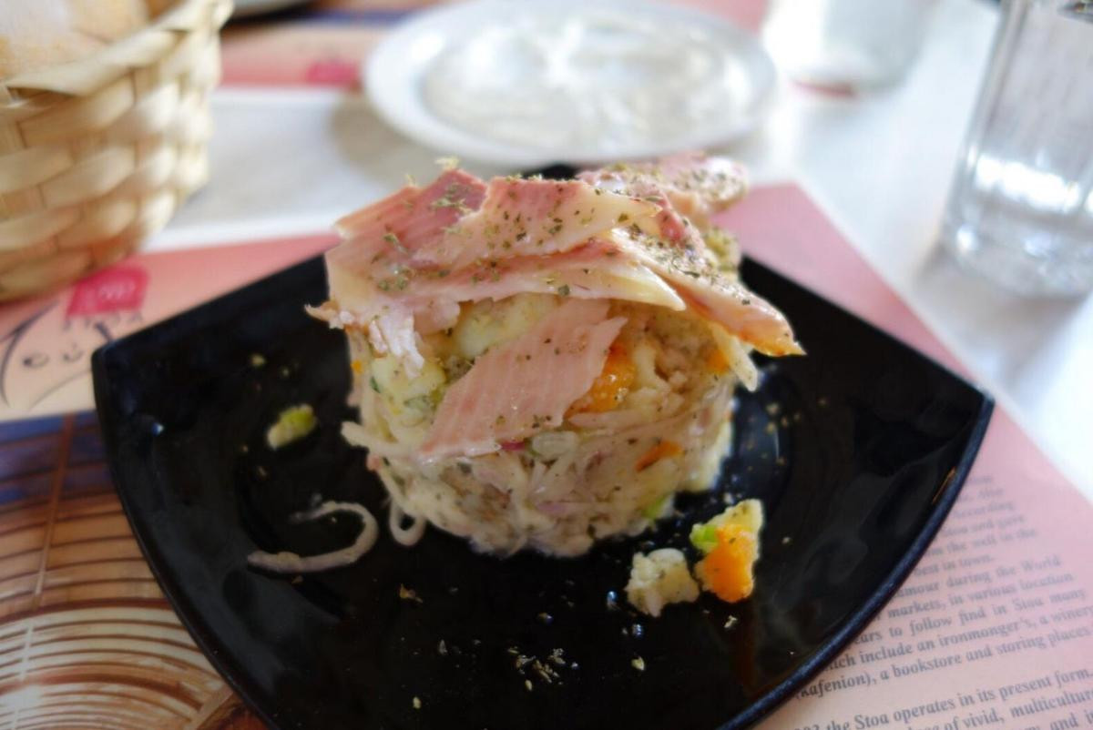 Μπορείς να δοκιμάσεις χειροποίητες πίτες, σαγανάκι Μετσοβόνε, καπνιστή πέστροφα, την νοστιμότερη σαλάτα της πόλης με το όνομα Vintage που περιέχει λάχανο, μαρούλι, καρότο, ντομάτα, κοτόπουλο, μπέικον, τυρί γκούντα, σως, μαγιονέζα και dressing με μέλι και μουστάρδα... να γλείφεις τα δάχτυλά σου.. Τέλος, για κυρίως πιάτο υπάρχει ένα συγκεκριμένο που κλέβει καρδιές. Αυτό είναι το χουνκιάρ μπεγεντί που είναι νοστιμότατο μοσχαράκι με πουρέ μελιτζάνας και κόκκινη σάλτσα.